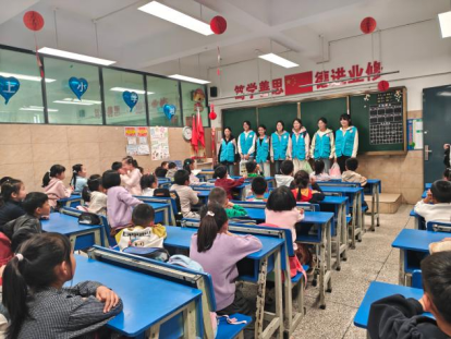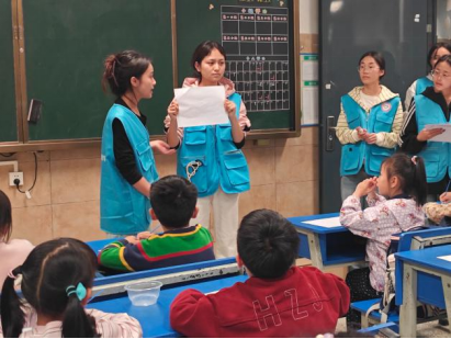 为深化“服务型党支部”建设,弘扬志愿精神,2026年4月1日,理学院学生第四党支部由支部书记张灵老师带领8名支部成员,走进昆明市盘龙区红旗小学,为一年级学生带来了一场别开生面的“神奇变色画”科普趣味实验活动。