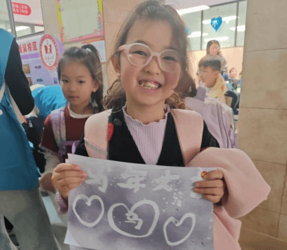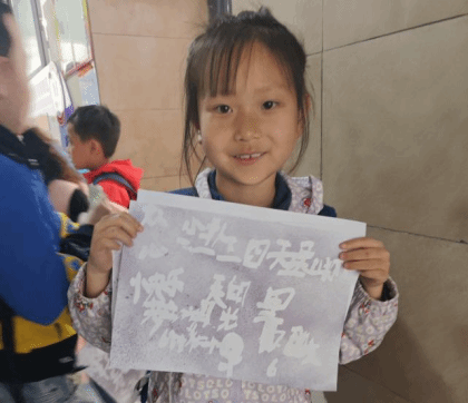 活动前期,支部成员与红旗小学老师紧密对接,精心筹备。课堂上,支部同志们以“维生素C与碘酒的还原反应”为原理,用生动语言讲解色彩变化的科学奥秘,并手把手指导孩子们用画笔蘸取VC溶液在画纸上创作,并由支部成员在保证与小朋友安全距离情况下喷洒上碘酒。原本无色的画纸随着孩子们的笔触逐渐变白变蓝,一幅幅“隐形画作”神奇显现,现场气氛热烈,孩子们兴致高昂、积极参与,与志愿者共同绘制出充满童趣的科学画作。